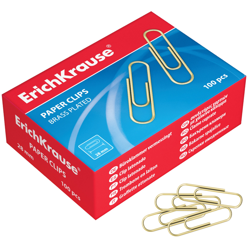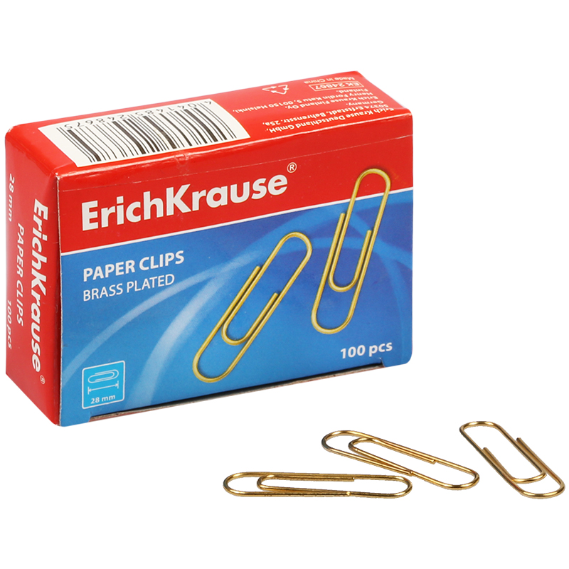 Скрепки 28мм, Erich Krause, 100шт., омедненные, карт. упак.