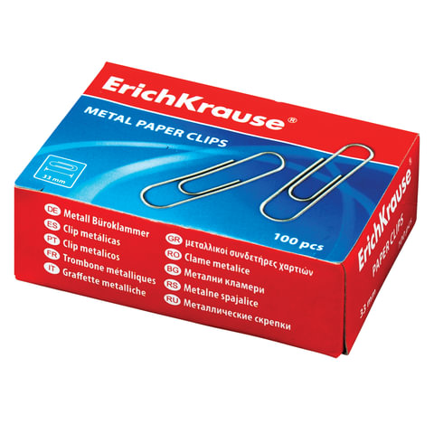 Скрепки ERICH KRAUSE, 33 мм, оцинкованные, 100 шт., в картонной коробке, 7856