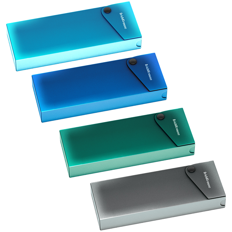 Пенал-футляр 200*74*27 Erich Krause "Ice Metallic", пластик, ассорти, на кнопке