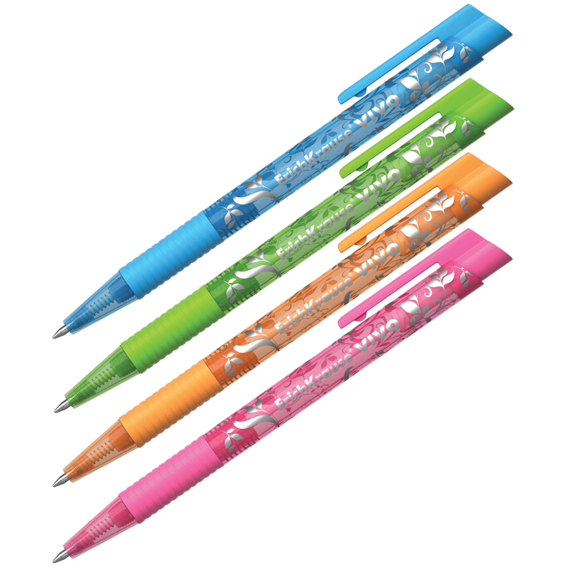 Ручка шариковая автоматическая Erich Krause "Vivo Spring" синяя, 0,7мм, грип, корпус ассорти
