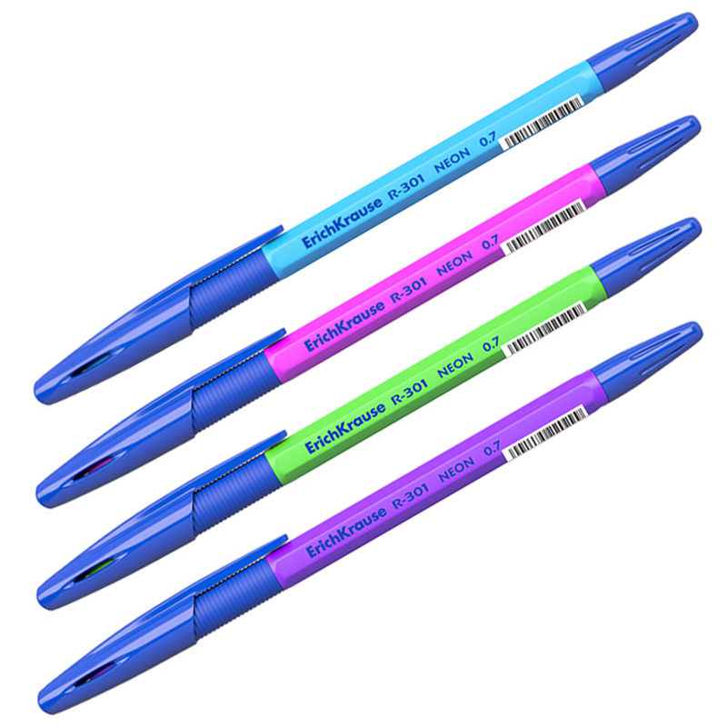 Ручка шариковая Erich Krause "R-301 Neon" синяя, 0,7мм, грип, корпус ассорти