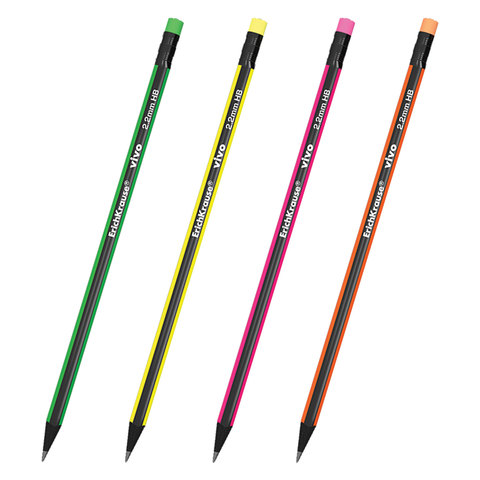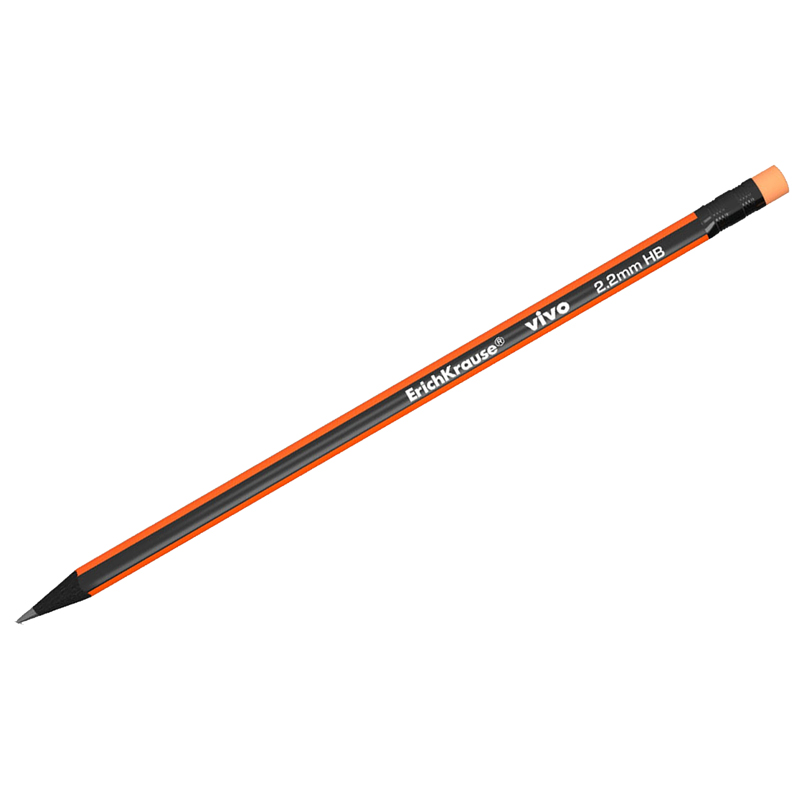 Карандаш чернографитный ERICH KRAUSE, 1шт., "Vivo", HB, черное дерево, с ластиком, корпус ассорти, заточенный, 45623