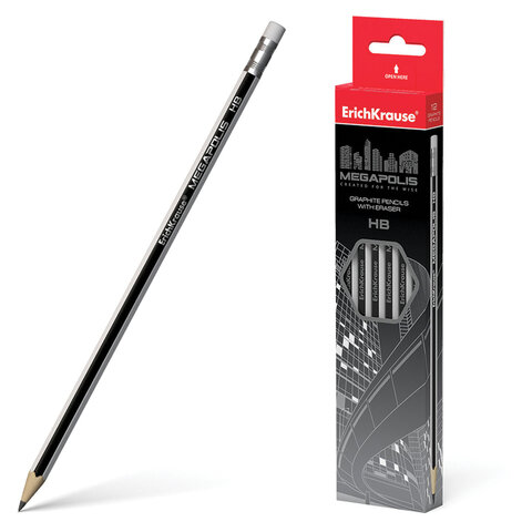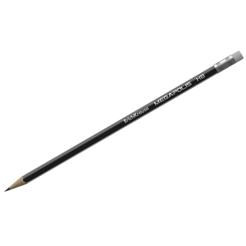Карандаш ч/г Erich Krause "Megapolis" HB, с ластиком, трехгран., заточен.