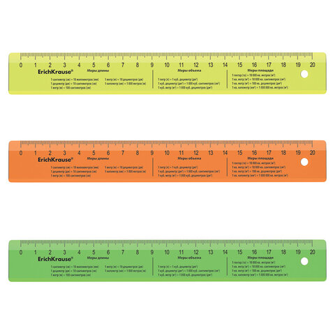 Линейка пластиковая 20 см, ERICH KRAUSE "NEON", с единицами измерения, ассорти, 55502