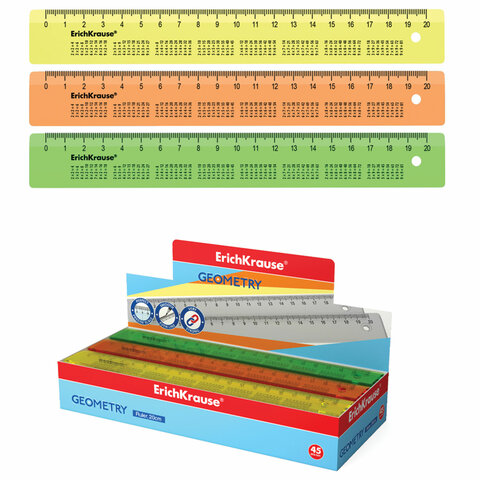 Линейка пластиковая 20 см, ERICH KRAUSE "NEON", с таблицей умножения, ассорти, 57851
