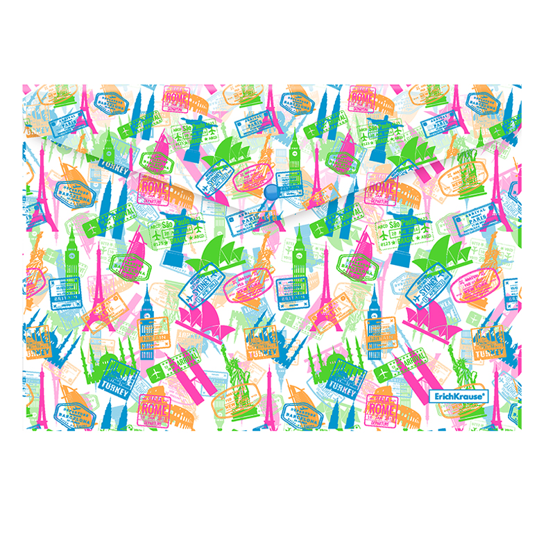 Папка-конверт на кнопке Erich Krause "Travel", А4, 180мкм, с рисунком