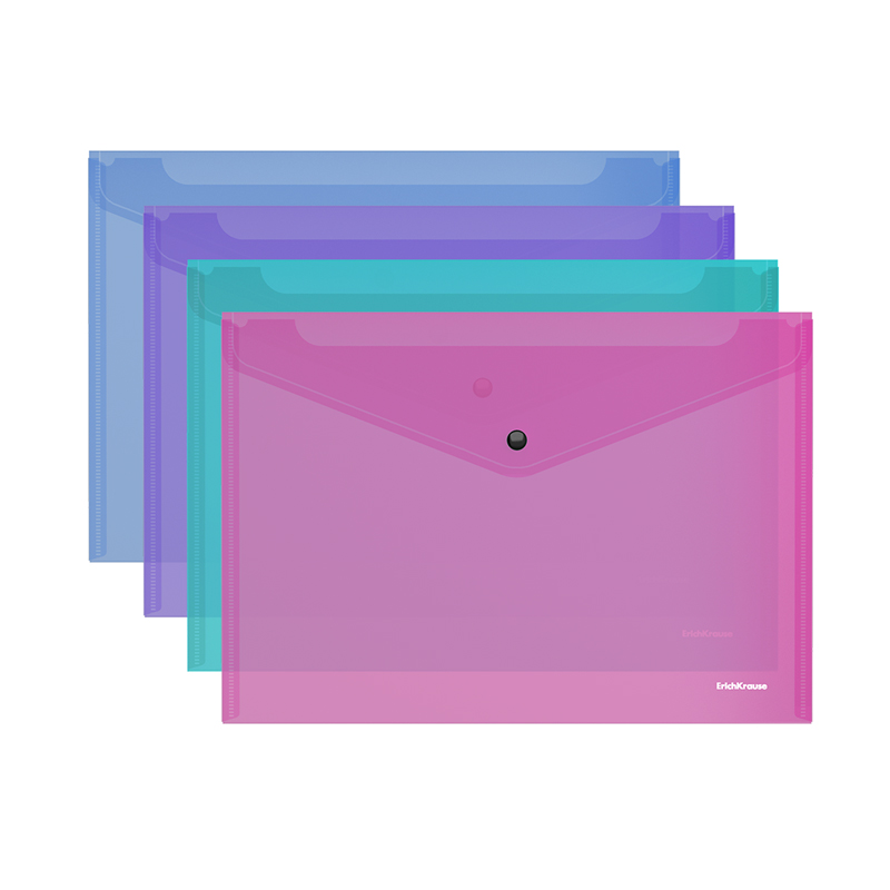 Папка-конверт на кнопке Erich Krause "Vivid" A4, 180мкм, полупрозрачная, ассорти