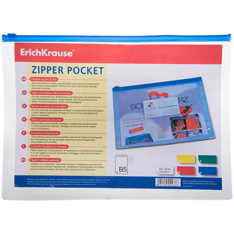 Папка-конверт на молнии Erich Krause "Fizzy Vivid", Travel 255*130мм, 140мкм, ассорти