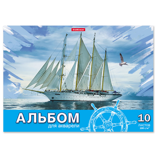 Альбом А4 10л жесткая подложка " Erich Krause " Морская прогулка с бумагой для акварели, склейка, обложка- мелованный картон, блок- офсет 180 г/м2