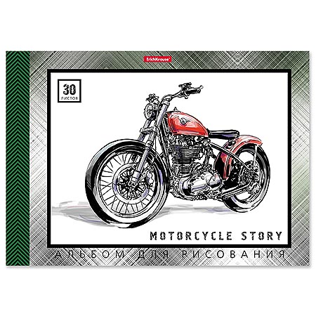 Альбом А4 30л жесткая подложка " Erich Krause " Motorcycle Story, склейка, обложка- мелованный картон, блок- офсет 170 г/м2