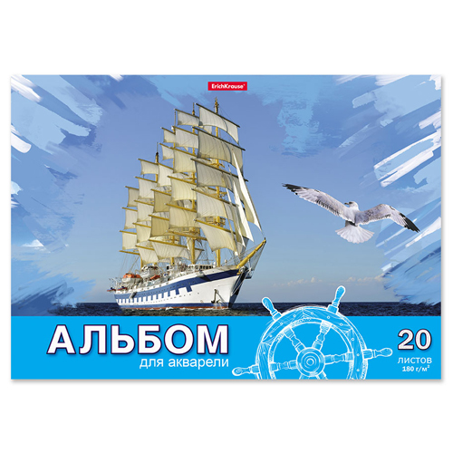Альбом А4 20л жесткая подложка " Erich Krause " Морская прогулка с бумагой для акварели, склейка, обложка- мелованный картон, блок- офсет 180 г/м2