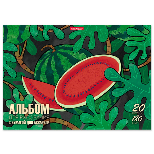 Альбом А4 20л жесткая подложка " Erich Krause " Juicy Fruits с бумагой для акварели, склейка, обложка- мелованный картон, блок- офсет 180 г/м2