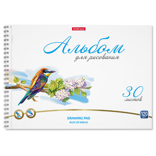 Альбом А4 30л жесткая подложка " Erich Krause " Birds, склейка, обложка- мелованный картон, блок- офсет 120 г/м2