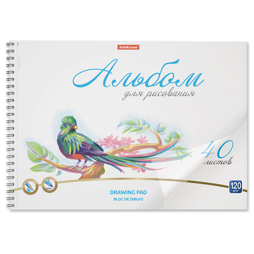 Альбом А4 40л жесткая подложка спираль " Erich Krause " Birds, обложка- пластик, блок- офсет 120 г/м2