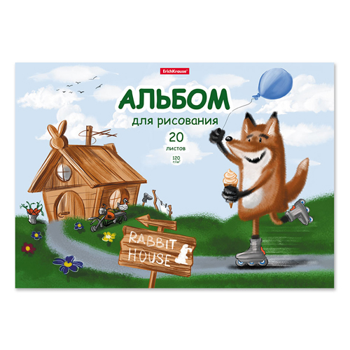 Альбом А4 20л жесткая подложка " Erich Krause " Хитрый лис, склейка, обложка- мелованный картон, блок- офсет 120 г/м2