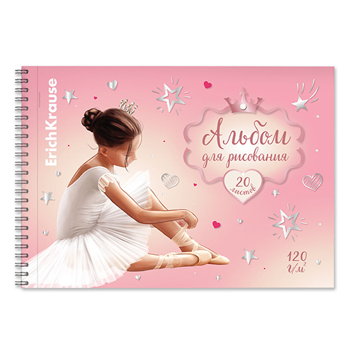 Альбом А4 20л жесткая подложка спираль " Erich Krause " Pointes, обложка- мелованный картон, блок- офсет 120 г/м2, микроперфорация