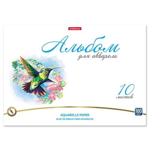 Альбом А4 10л жесткая подложка " Erich Krause " Birds с бумагой для акварели, склейка, обложка- мелованный картон, блок- офсет 180 г/м2