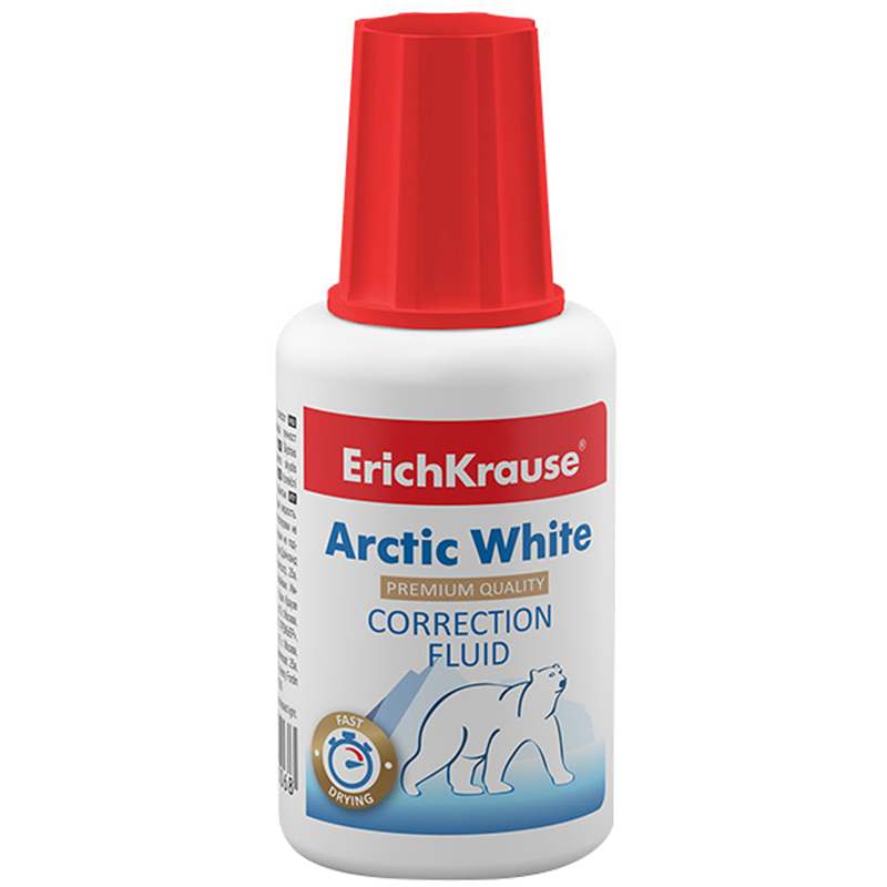 Корректирующая жидкость Erich Krause "Arctic White", 20мл, на химической основе, с кистью