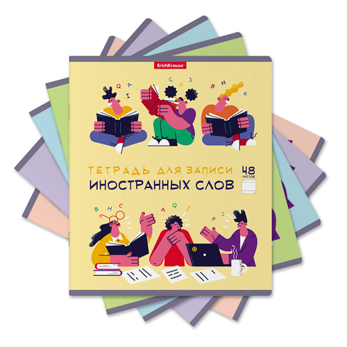 Тетрадь для записи иностранных слов МАЛЫЙ ФОРМАТ А5+ 48л " Erich Krause " Friendship, линейка, на скобе, офсет, обложка мелованный картон, скругленные углы, 5 дизайнов без возможности выбора