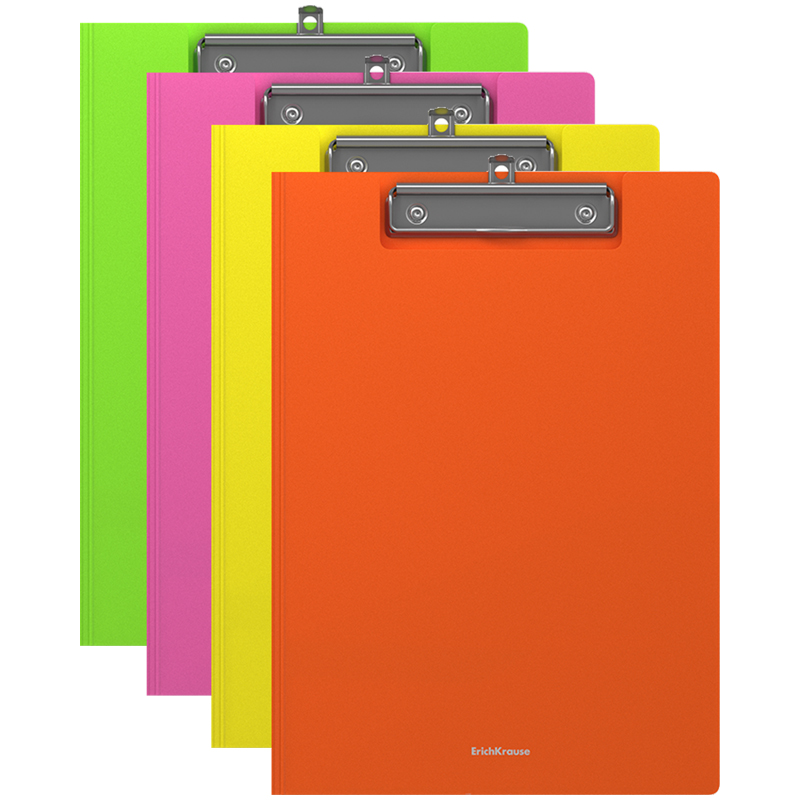Папка-планшет с зажимом Erich Krause "Neon" А4, пластик, ассорти