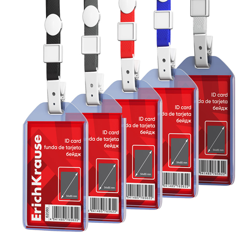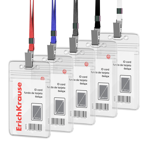 Бейдж " EK " 62*91мм вертикальный, прозрачный, ПВХ, лента 12мм ассорти, в пакете
