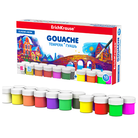 Гуашь " Erich Krause " Classic Neon 18цв*20мл, картонная упаковка