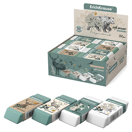 Ластик " Erich Krause " Natural Life 60*25*10мм, ассорти, прямоугольный