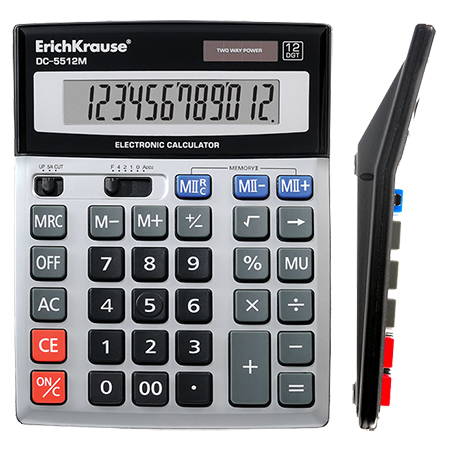 Калькулятор " Erich Krause " DC-5512M, 12-разрядный, 53*204*12мм, настольный, серый