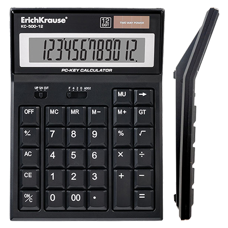 Калькулятор " Erich Krause " КС-500-12, 12-разрядный, 140*193*10мм, настольный, черный