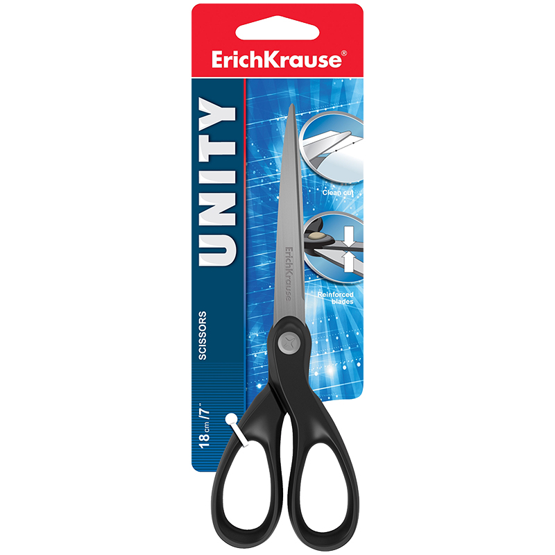 Ножницы Erich Krause "Comfort" 18см, эргономич. ручки, мягк. вставки, европодвес