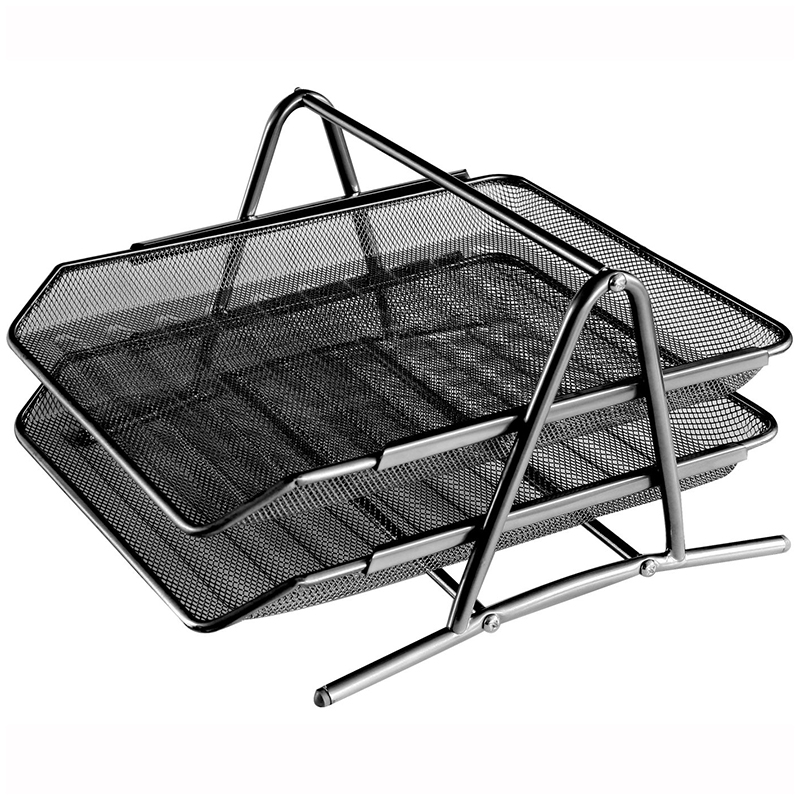 Лоток для бумаг горизонтальный Erich Krause "Steel", 2-х уровневый, сетчатый, металл, черный