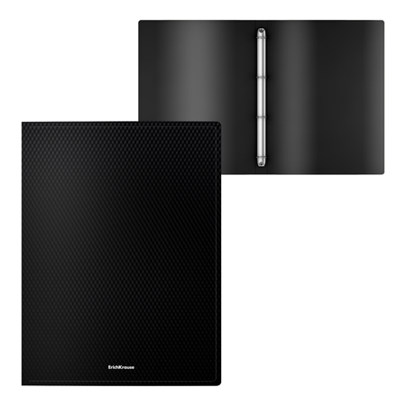 Папка 4 кольца " Erich Krause " А4 24мм Diamond Total Black черная, пластик 0,55мм, с тестурой поверхности " даймонд "