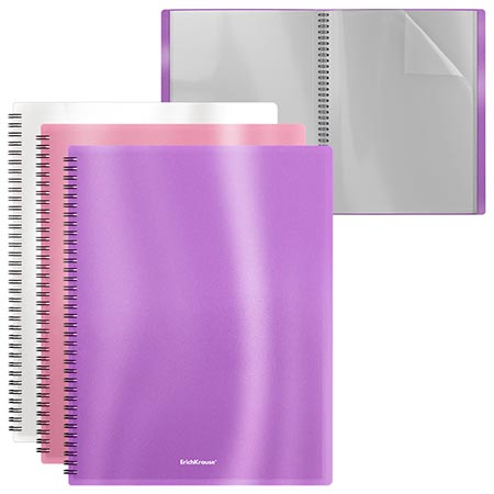 Папка 20файлов " Erich Krause " А4 Matt Ice Metallic ассорти, пластик 0,60мм, на спирали, с текстурой поверхности " песок "