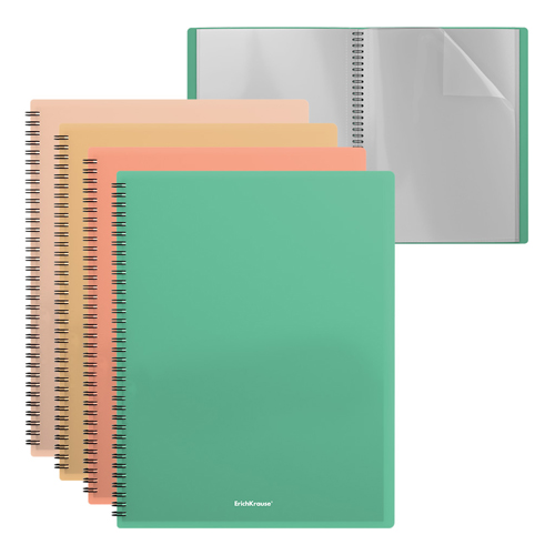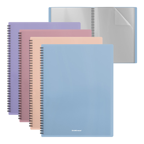Папка 30файлов " Erich Krause " А4 Matt Powder ассорти, пластик 0,60мм, на спирали, с текстурой поверхности " песок "