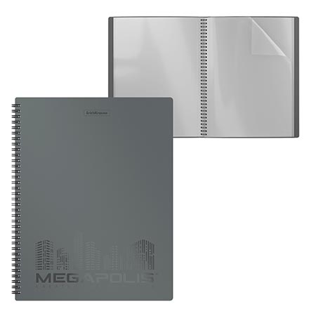 Папка 60файлов " Erich Krause " А4 Megapolis серая, пластик 0,60мм, на спирали, с текстурой поверхности " песок "