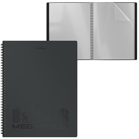 Папка 60файлов " Erich Krause " А4 Megapolis черная, пластик 0,60мм, на спирали, с текстурой поверхности " песок "