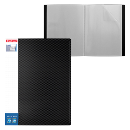 Папка 20файлов " Erich Krause " А4 Diamond Total Black, черная, пластик 0,55мм, с текстурой поверхности " даймонд ", с карманом на корешке