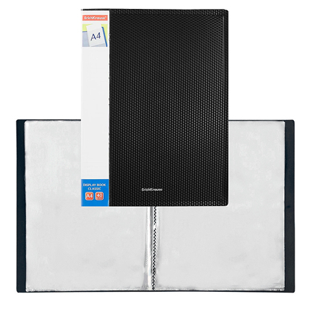 Папка 40файлов " Erich Krause " А4 Diamond Total Black, черная, пластик 0,55мм, с текстурой поверхности " даймонд ", с карманом на корешке