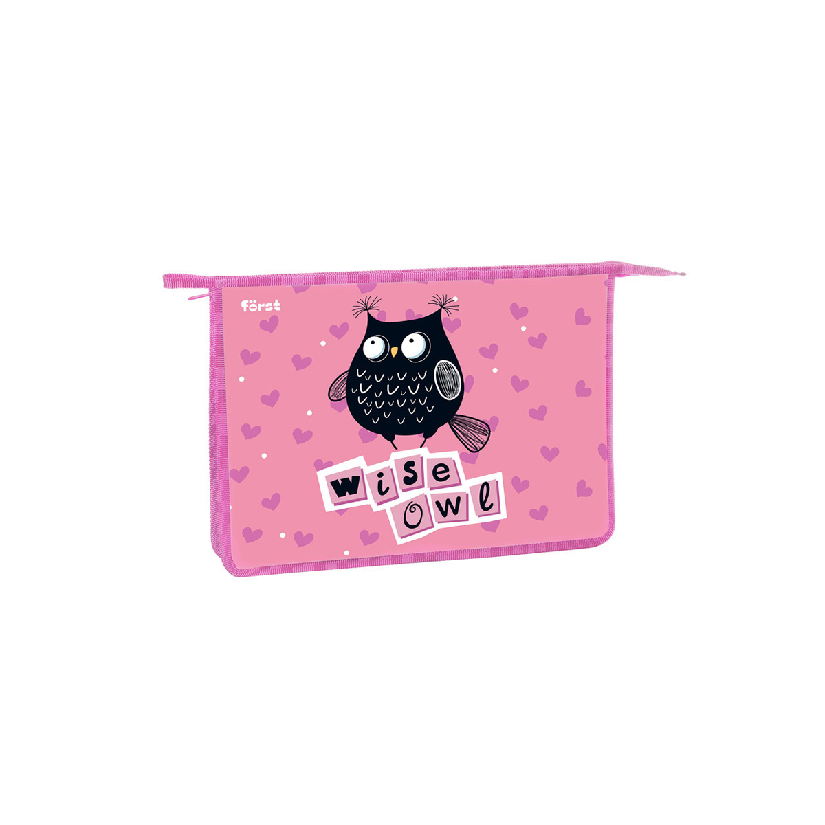 Папка для тетрадей 1 отделение, А4, Först "Black owl", 340*245*40мм, пластик, на молнии
