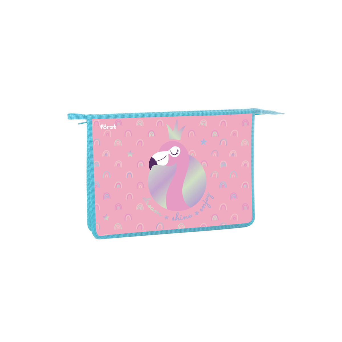 Папка для тетрадей 1 отделение, А4, Först "Shiny flamingo", 340*245*40мм, пластик, на молнии