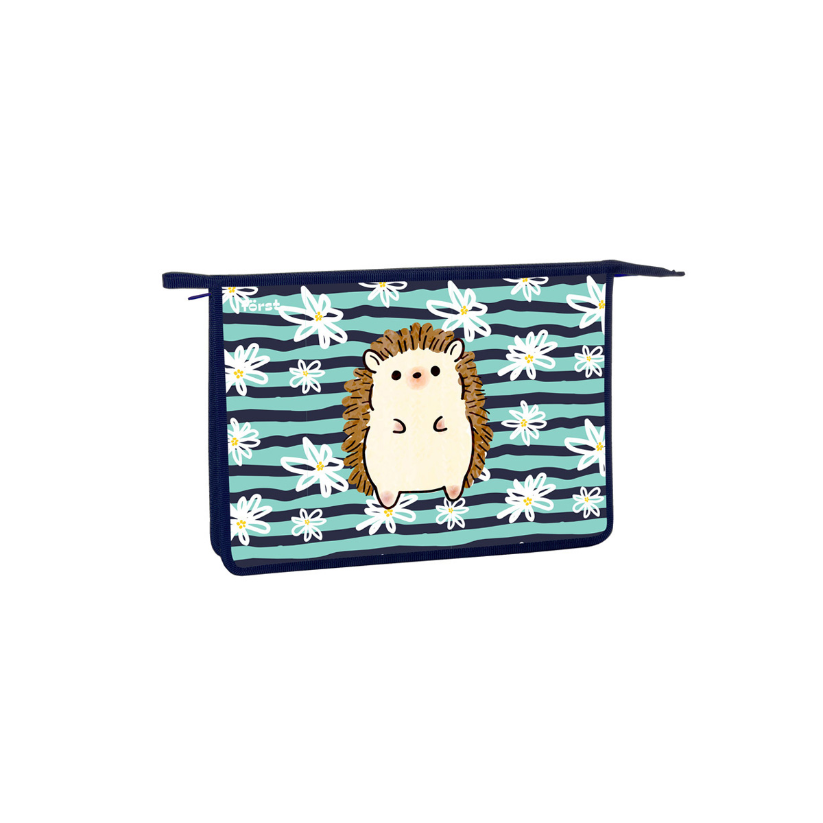 Папка для тетрадей 1 отделение, А4, Först "Blue hedgehog", 340*245*40мм, пластик, на молнии