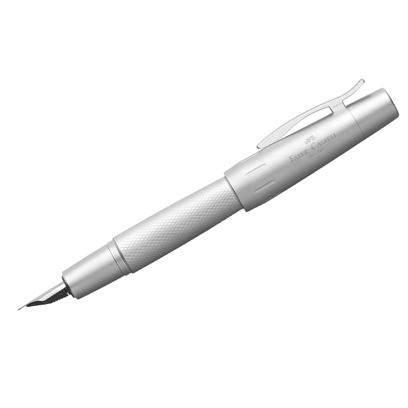 Ручка перьевая Faber-Castell "E-motion" синяя, М=0,75мм, серебристый метал. корпус, подарочная карт. упаковка