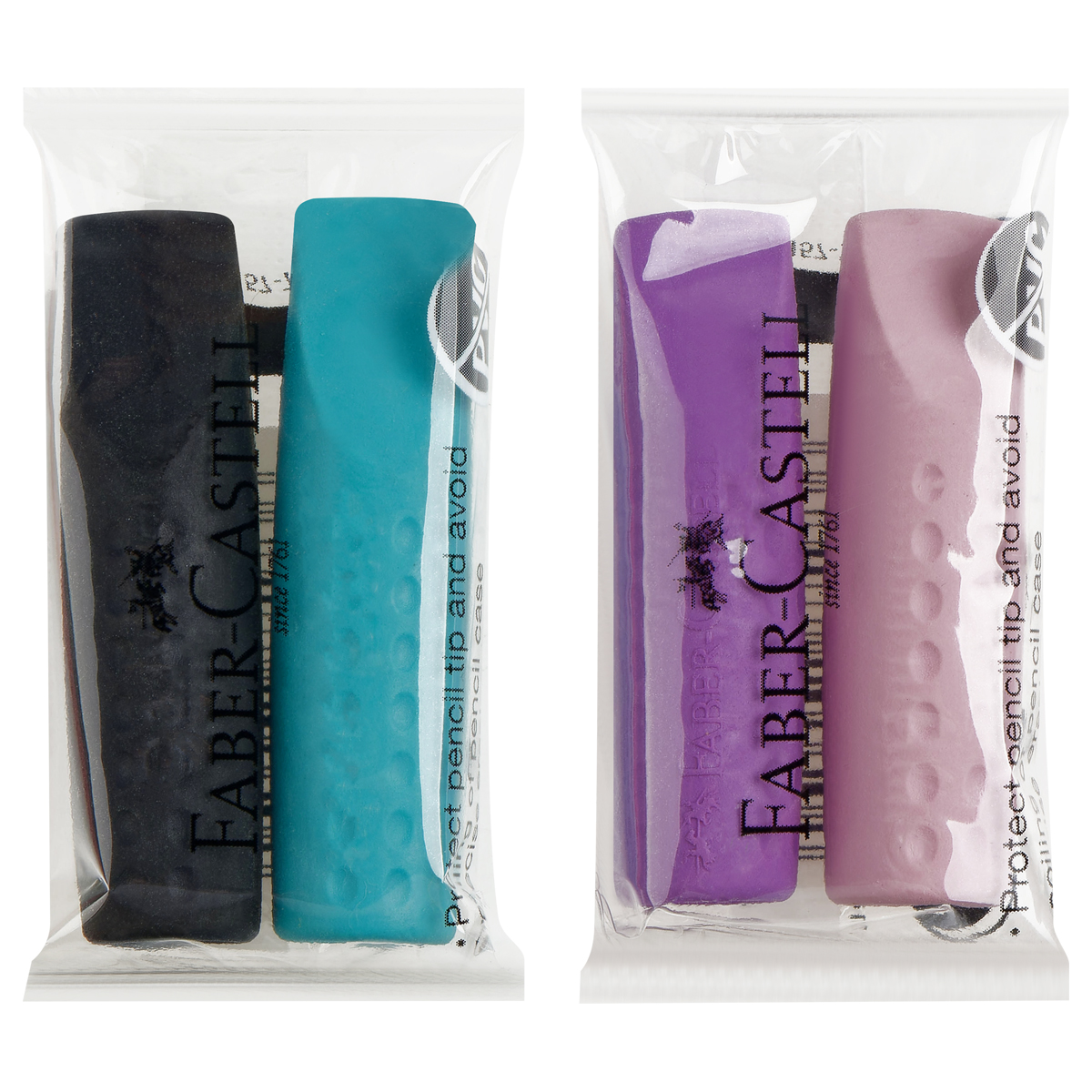 Набор ластиков-колпачков Faber-Castell "Grip 2001" 2шт., трехгранные, бирюза-сирень, ассорти, пакет