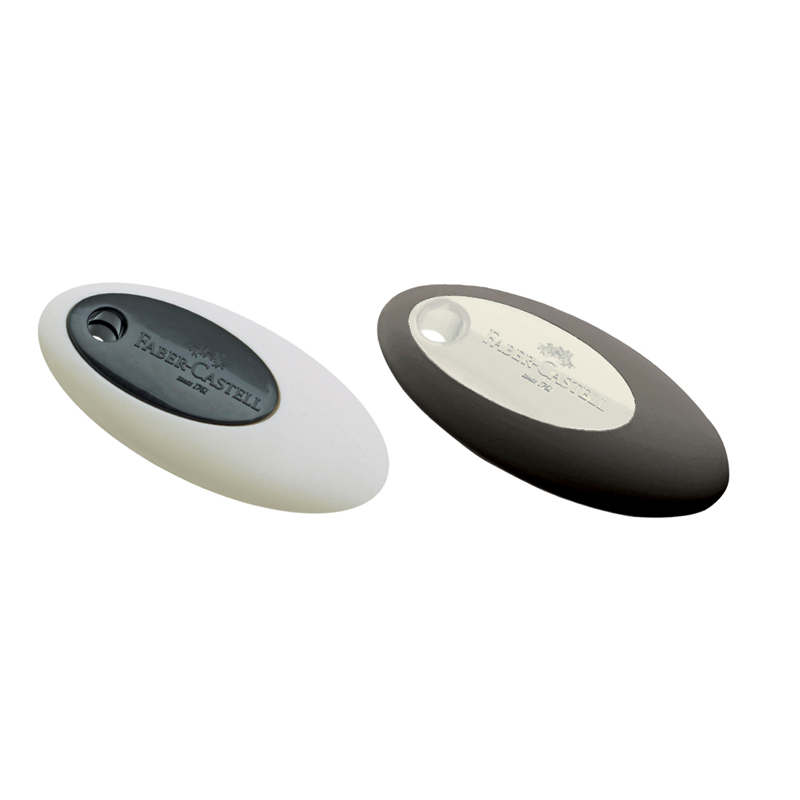 Ластик Faber-Castell "Oval" PVC-free, овальный, пластиковый держатель, черный/белый, 60*30*10мм