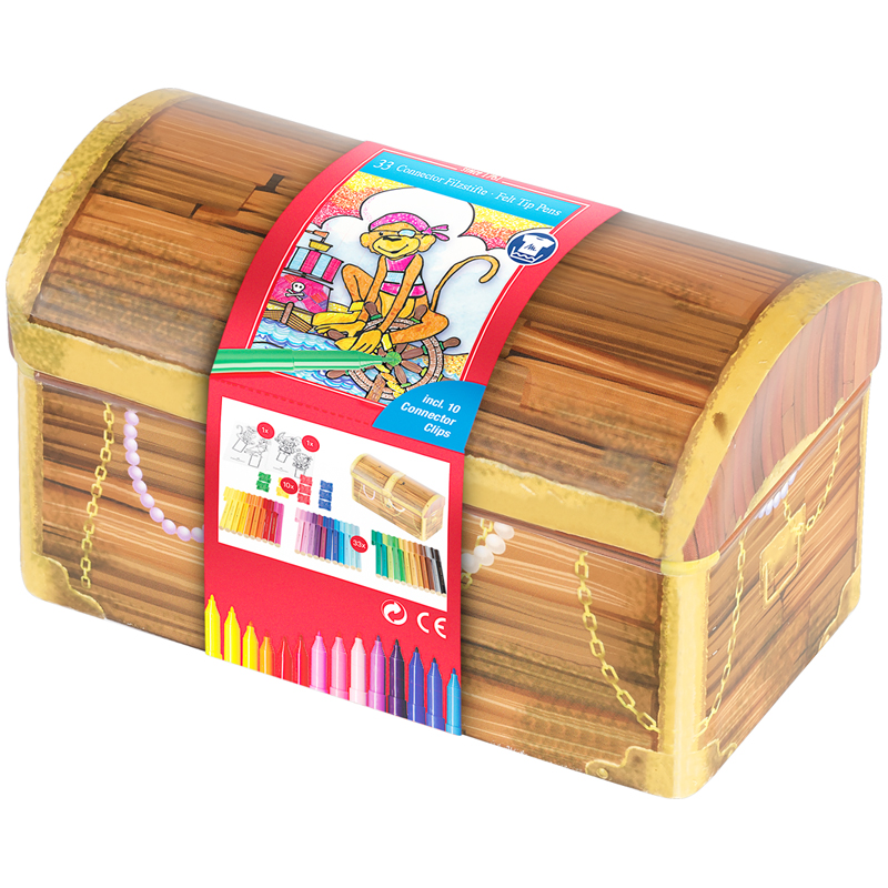 Набор для рисования Faber-Castell "Connector Treasure box" 33 фломастера+10 клипс+2 карты для раскр.