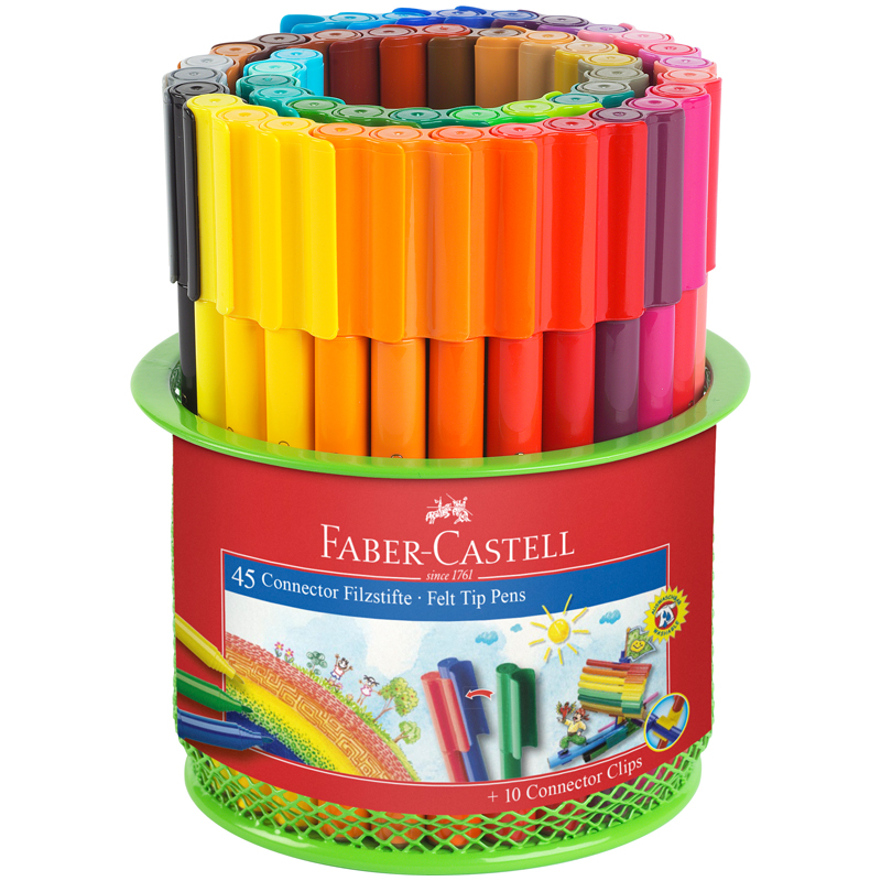 Набор для рисования Faber-Castell "Connector" 45 фломастеров+10 клипс, металлический стакан