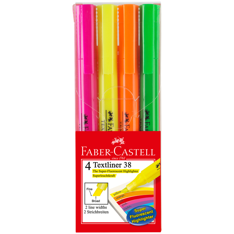 Набор текстовыделителей Faber-Castell "38" 4цв., 1-5мм, пластик. уп., европодвес