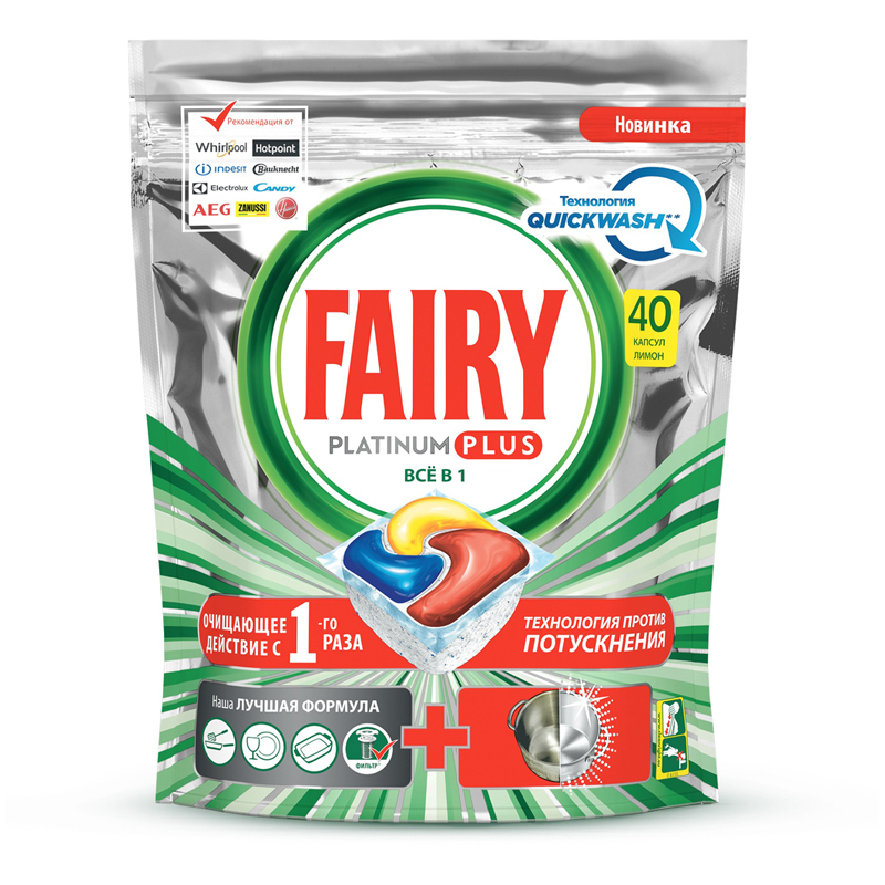 Капсулы для посудомоечной машины Fairy "Platinum Plus. All in 1. Лимон", 40шт.