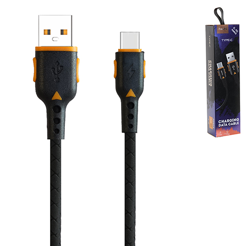 Кабель сетевой USB - Type-C " FaisON " K-90 Force чёрный, оранжевая вставка, круглый, 1м, 3А, силикон