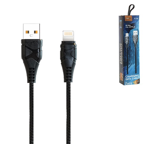 Кабель сетевой USB - Lightning " FaisON " K-50 Zero чёрный, круглый, 1м, 3А, силикон